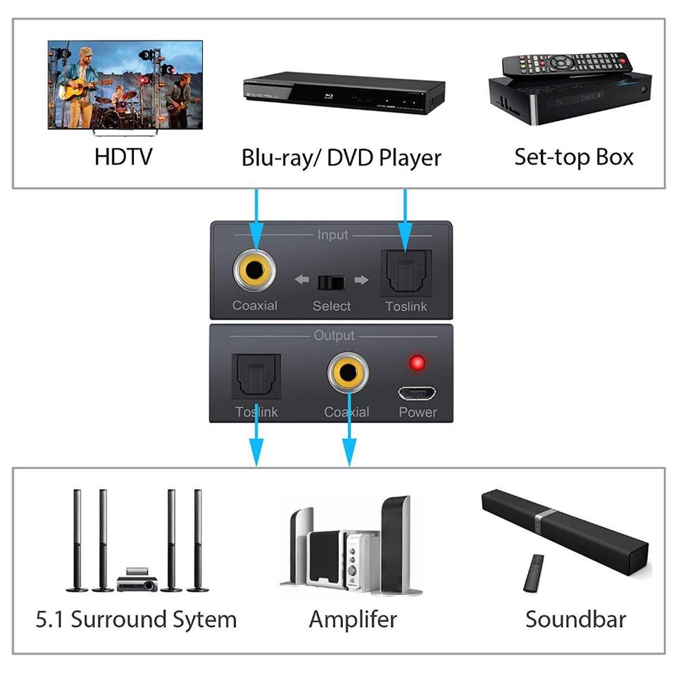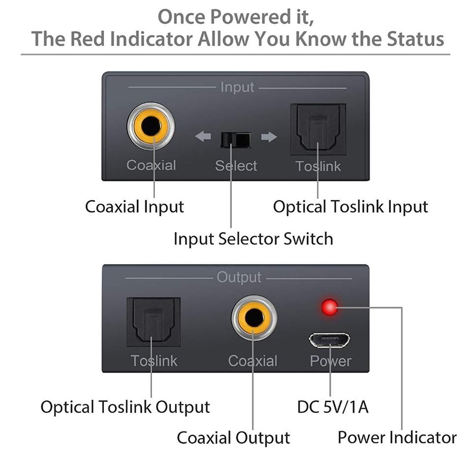 Convertisseur audio numérique bidirectionnel Toslink vers coaxial, adaptateur commutateur optique SPDIF vers coaxial, coaxial vers optique Toslink