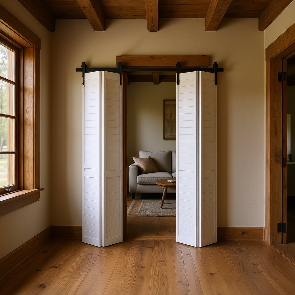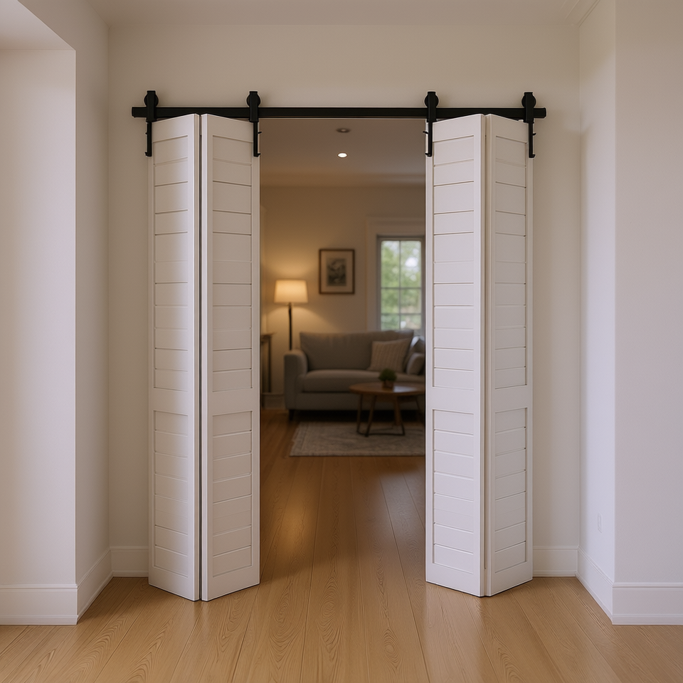 Kit de quincaillerie pour porte coulissante pliante de 60 pouces, rail noir, style ferme, en acier au carbone, pour intérieur