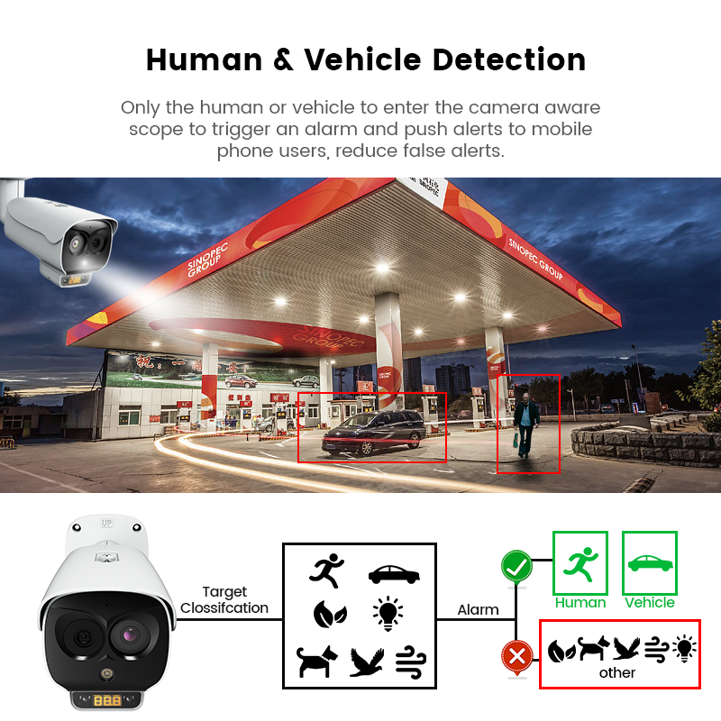 Vision nocturne, Détection de mouvement, Mesure de la température, Imperméabilisez/protégez contre les intempéries, Built-in Sirène, Compter les gens, Audio bidirectionnelUsages spéciaux