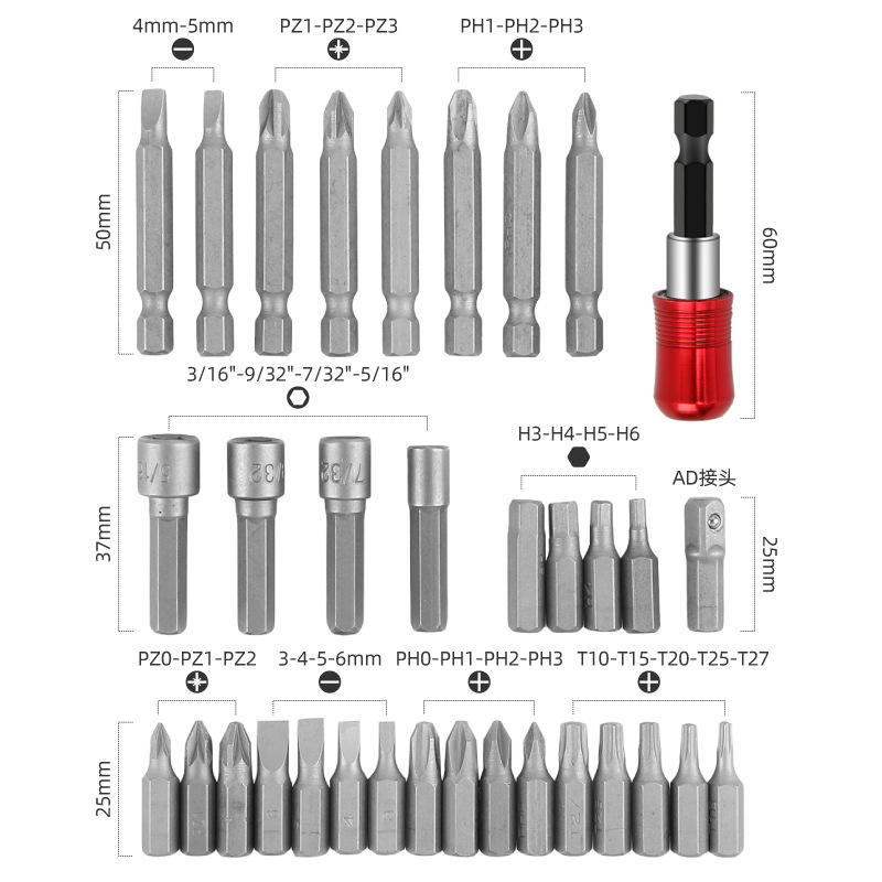 Jeu de tournevis Bi003, 34 pièces, embouts métriques cruciformes, plats, hexagonaux, Torx, outil manuel personnalisable