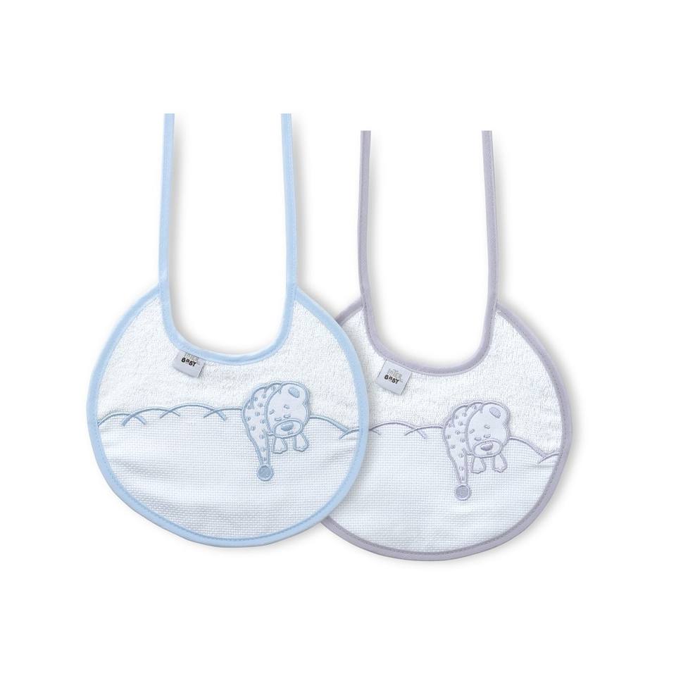 Ensemble de bavoirs (2 unités) en tissu 100% coton gris et bleu pour bébés et enfants