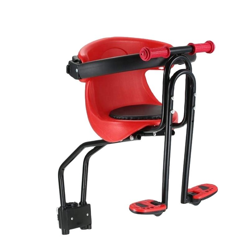 Bicycle Baby Seat Kids Child Safety Carrier Front Seat Saddle Cushion with Back Rest Foot Pedals