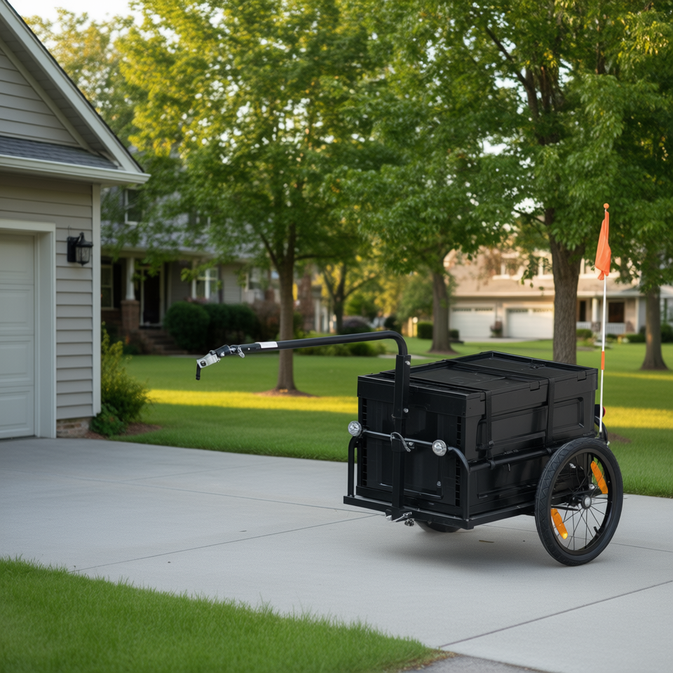 Remorque de vélo D0100XF35T6 avec boîte amovible, cadre pliable, fond en acier, capacité de charge de 100 à 1000 kg