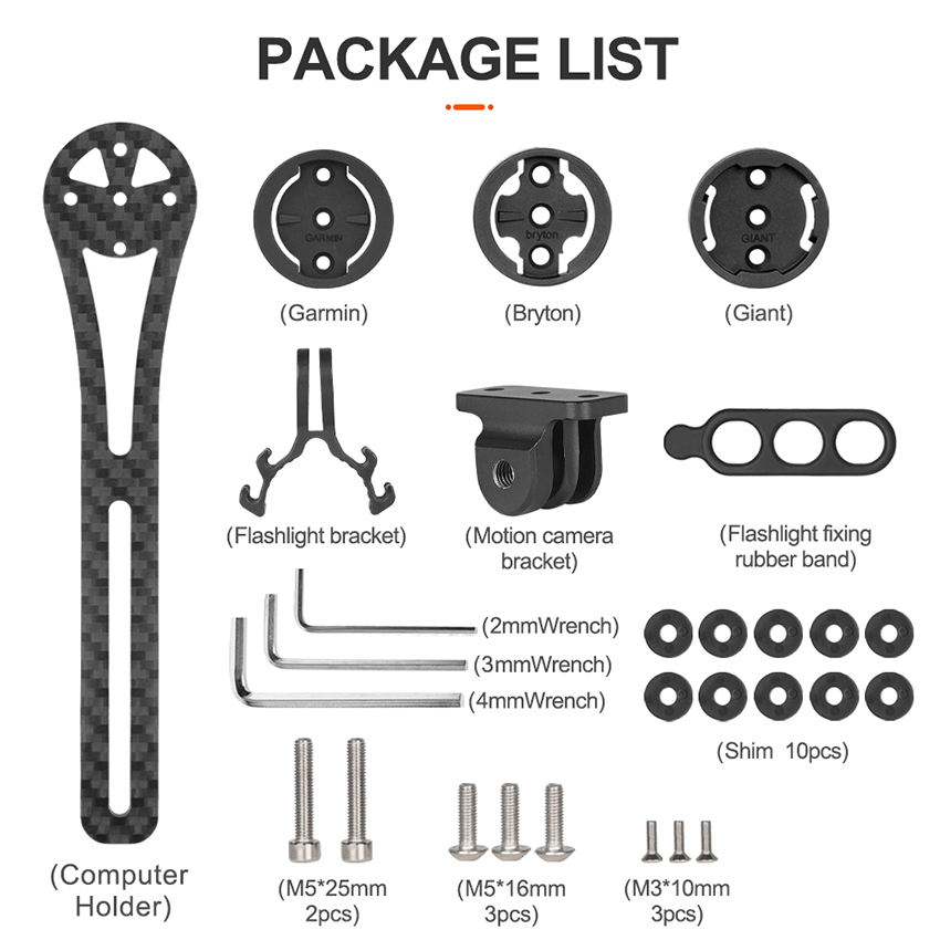Support de compteur de vélo en carbone pour GPS, chronomètre, GoPro, Bryton, Wahoo et capteurs – Accessoire de vélo