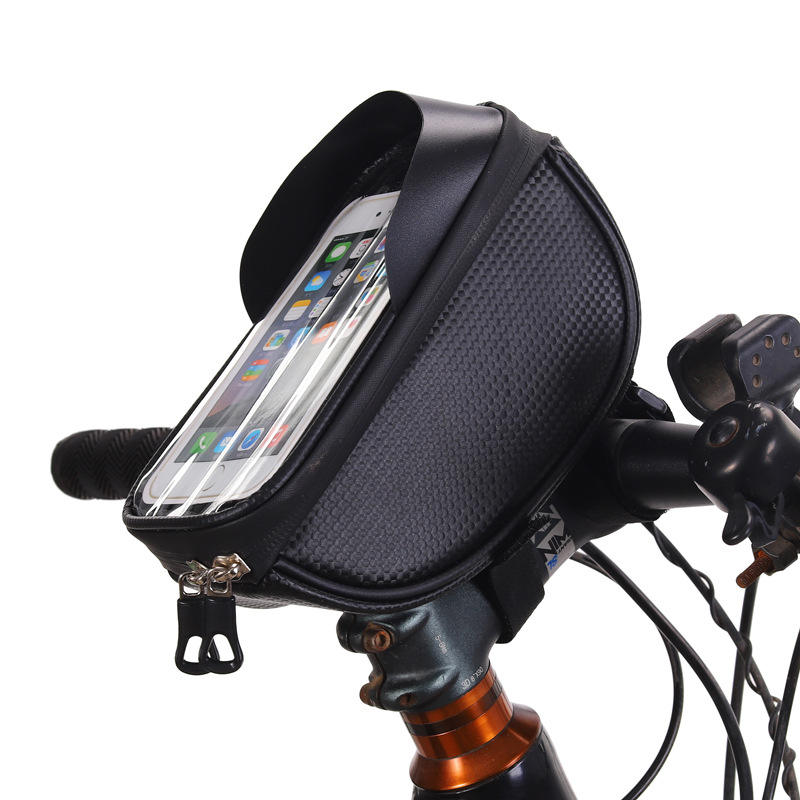 Sac de guidon de vélo avec poche pour téléphone portable étanche à écran tactile, sac de tube supérieur haute capacité, noir