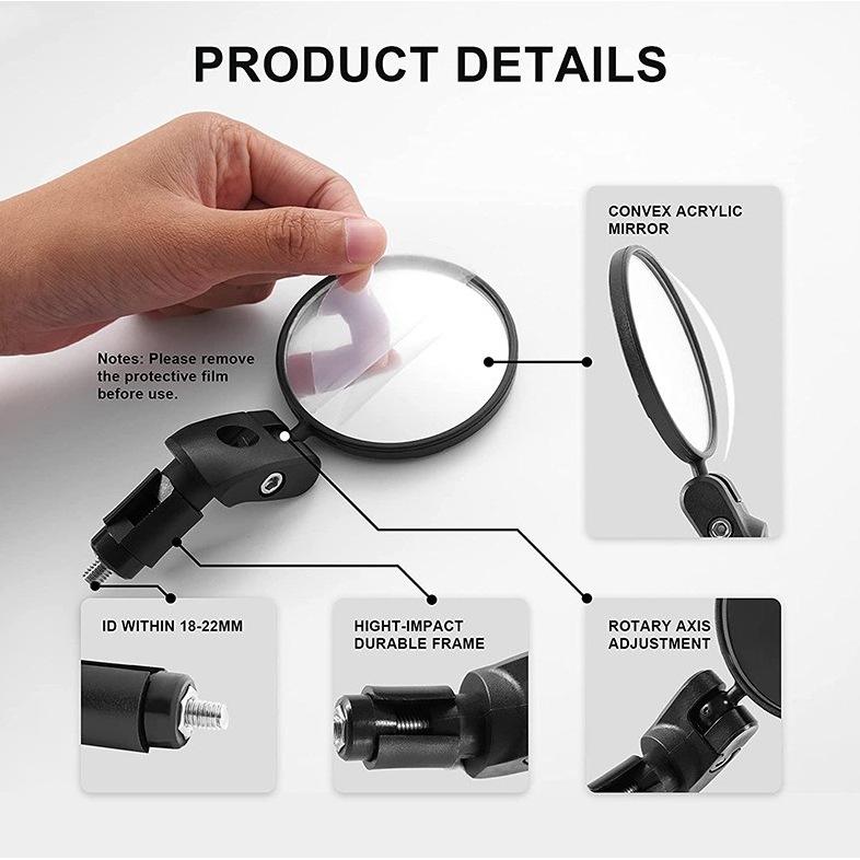 Rétroviseur de vélo avec lentille en acrylique, support de guidon rotatif à 360 degrés pour vélos de montagne, avec clé incluse