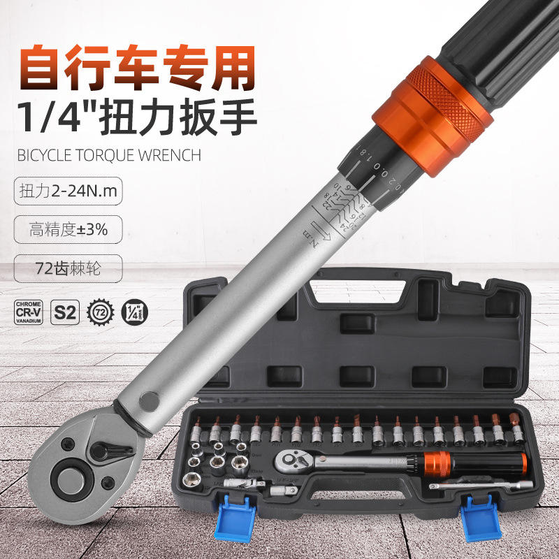Jeu de clés dynamométriques pour vélo 1/4 po, 28 pièces, 2-24 Nm, précision, acier au chrome-vanadium, coffret à outils