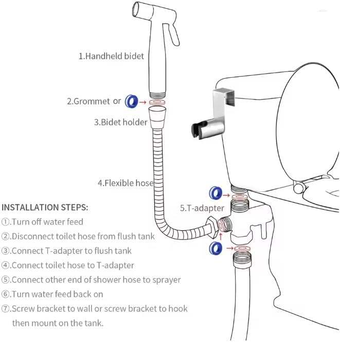 Pulvérisateur de bidet portatif moderne en acier inoxydable pour toilettes, douchette à main pour hôtels