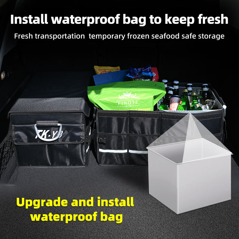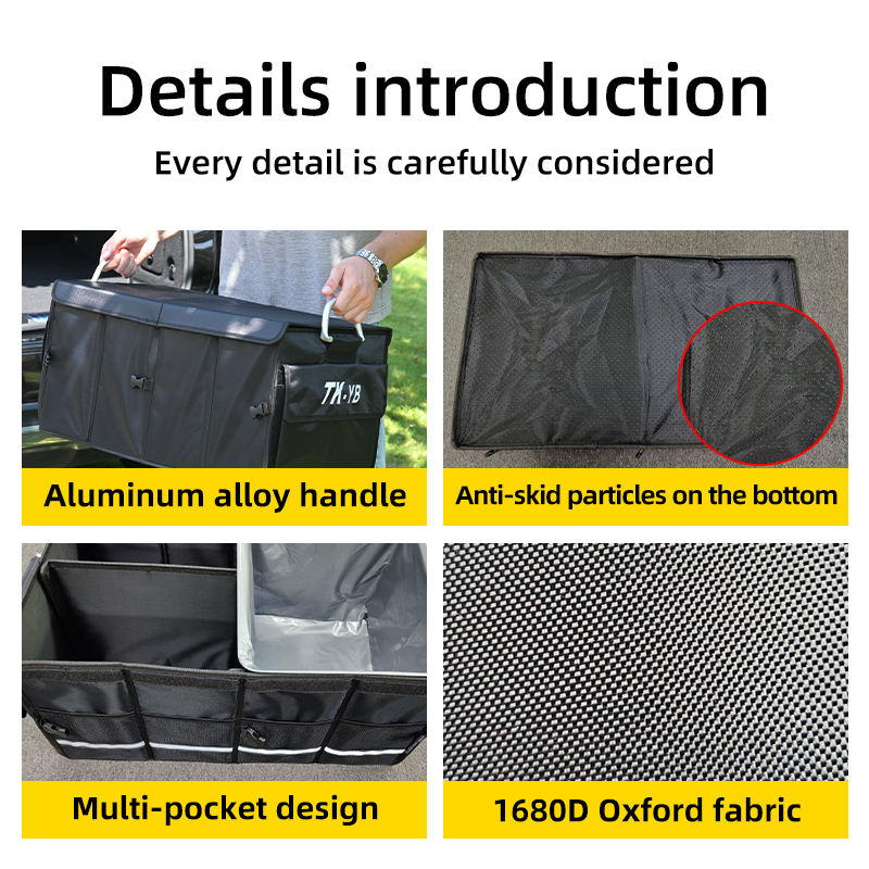 Boîte de rangement pour voiture de grande capacité, organisateur de coffre, fond antidérapant, pliable, outil de rangement de cargaison, boîte de coffre pour camions automobiles, sac de voyage