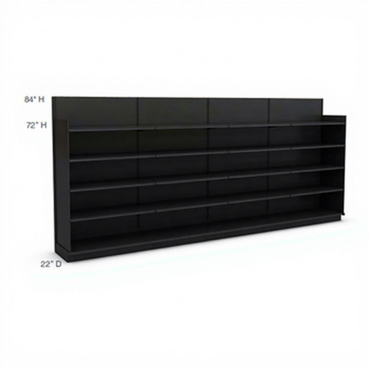 Présentoir gondole de magasin noir, grande capacité, simple face, pour îlot central.