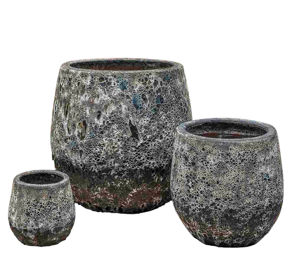 Big Ceramic Planter Reactive Blue Glazed Flower Pots Set of 3 Giant Plants Pot for Outdoor Home Garden