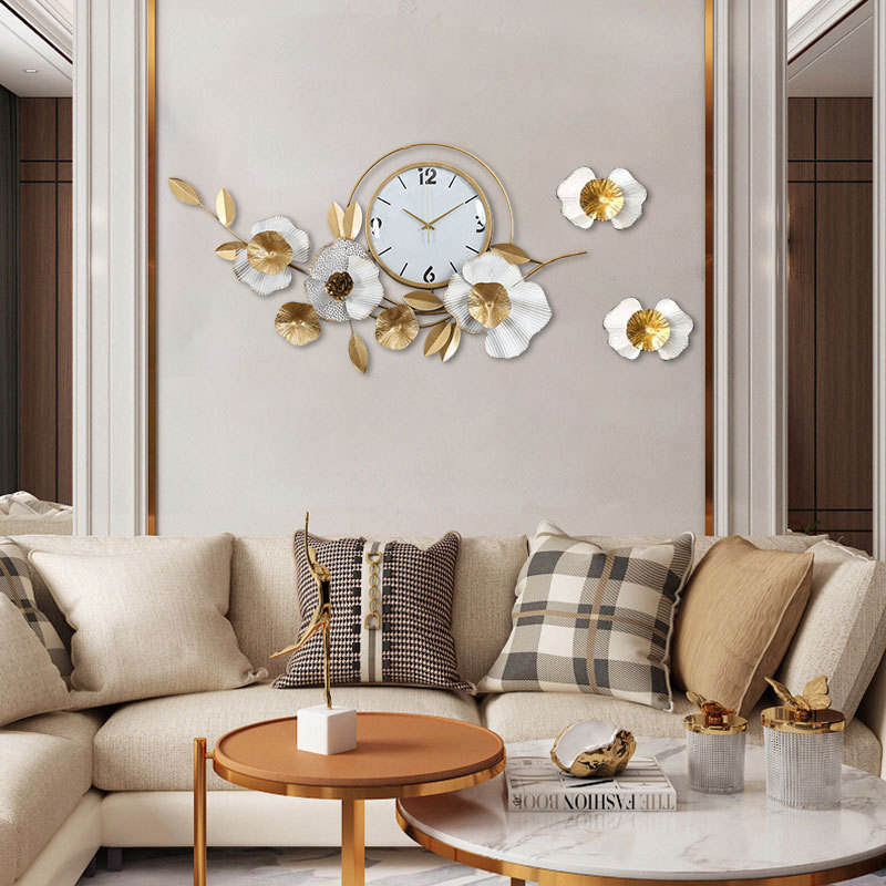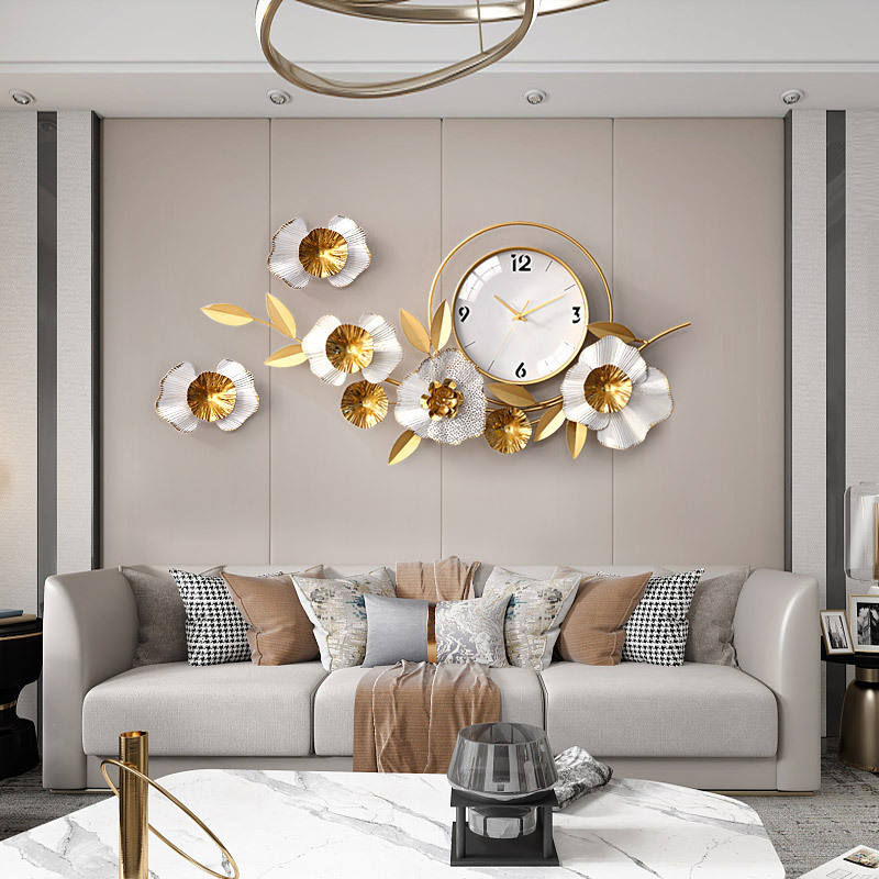 Grande horloge murale en métal personnalisée pour la décoration de luxe de salon de maison moderne