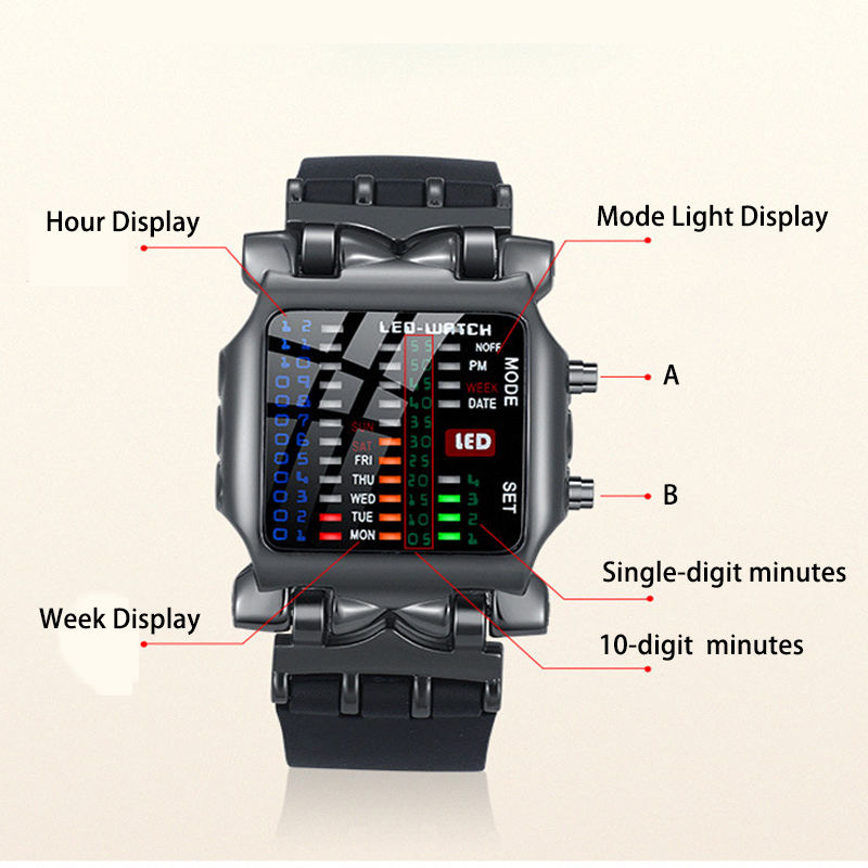 Alarme, Date automatique, Imperméable, LED D'affichage, Lumineux, Semaine Affichage, Pression Mesure, Résistant aux chocs, ChronomètreDispositif