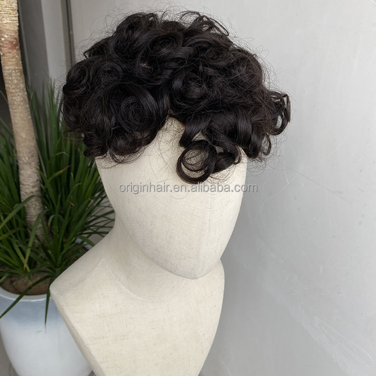 Grande réduction Stock faible densité 7x9 pouces 2 # 1B # Perruques Prothétiques pour Hommes en Cheveux Humains 100% Naturels, Base en Dentelle et en PU, Boucles, Base Australienne