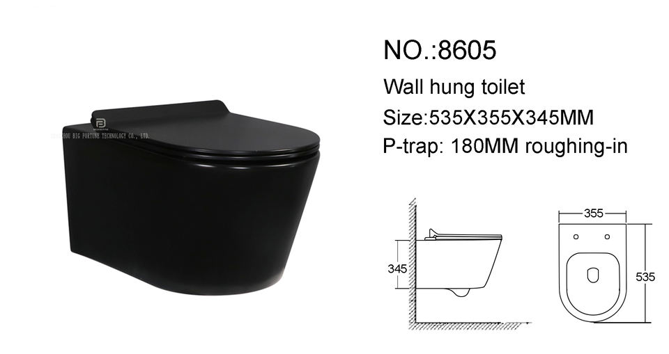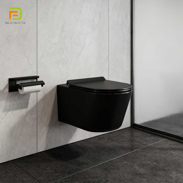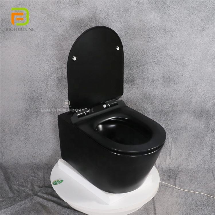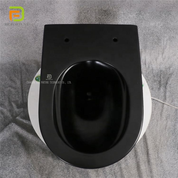 WC suspendu rond en porcelaine Big Fortune, noir, WC suspendu flottant, WC en céramique avec siphon mural