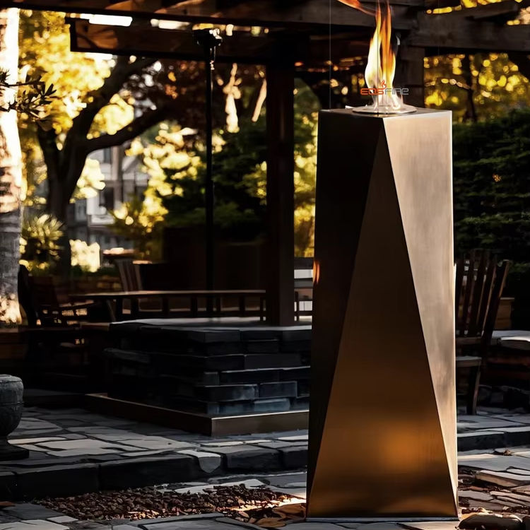 Grande cheminée ronde autoportante au bioéthanol Grand brûleur Chauffe-terrasse intérieur extérieur foyer à l'éthanol en métal
