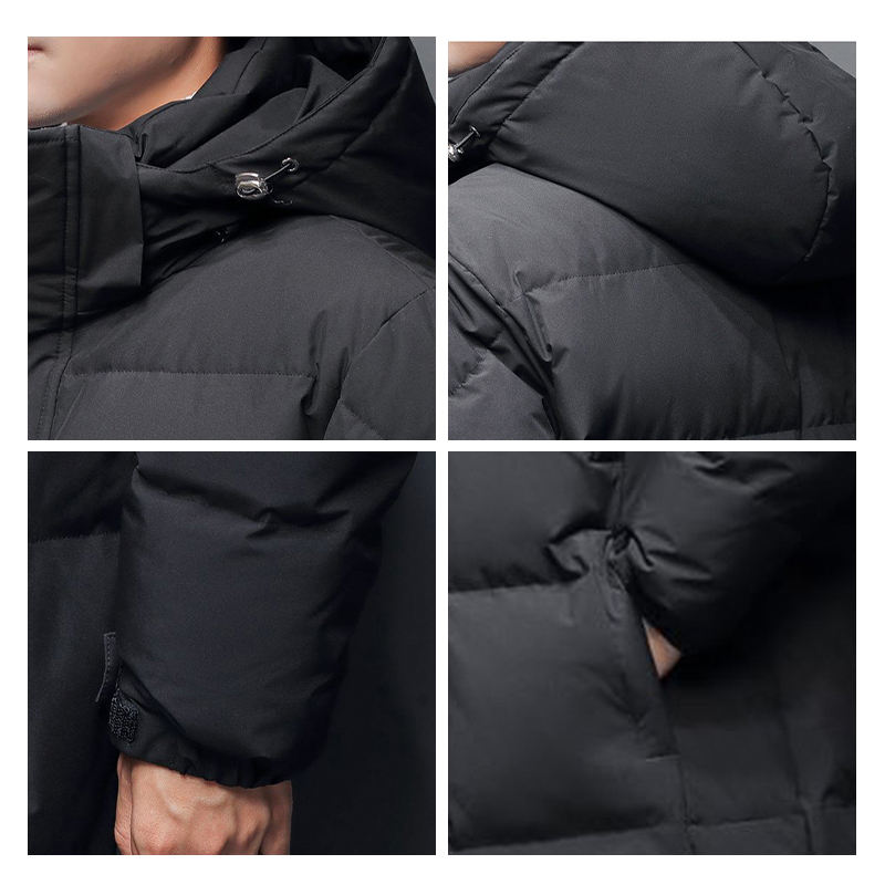 Grand col en fourrure résistant au froid, veste longue au-dessus du genou pour le travail hivernal en duvet de canard, veste en duvet épaisse personnalisée pour couple, de style transfrontalier.
