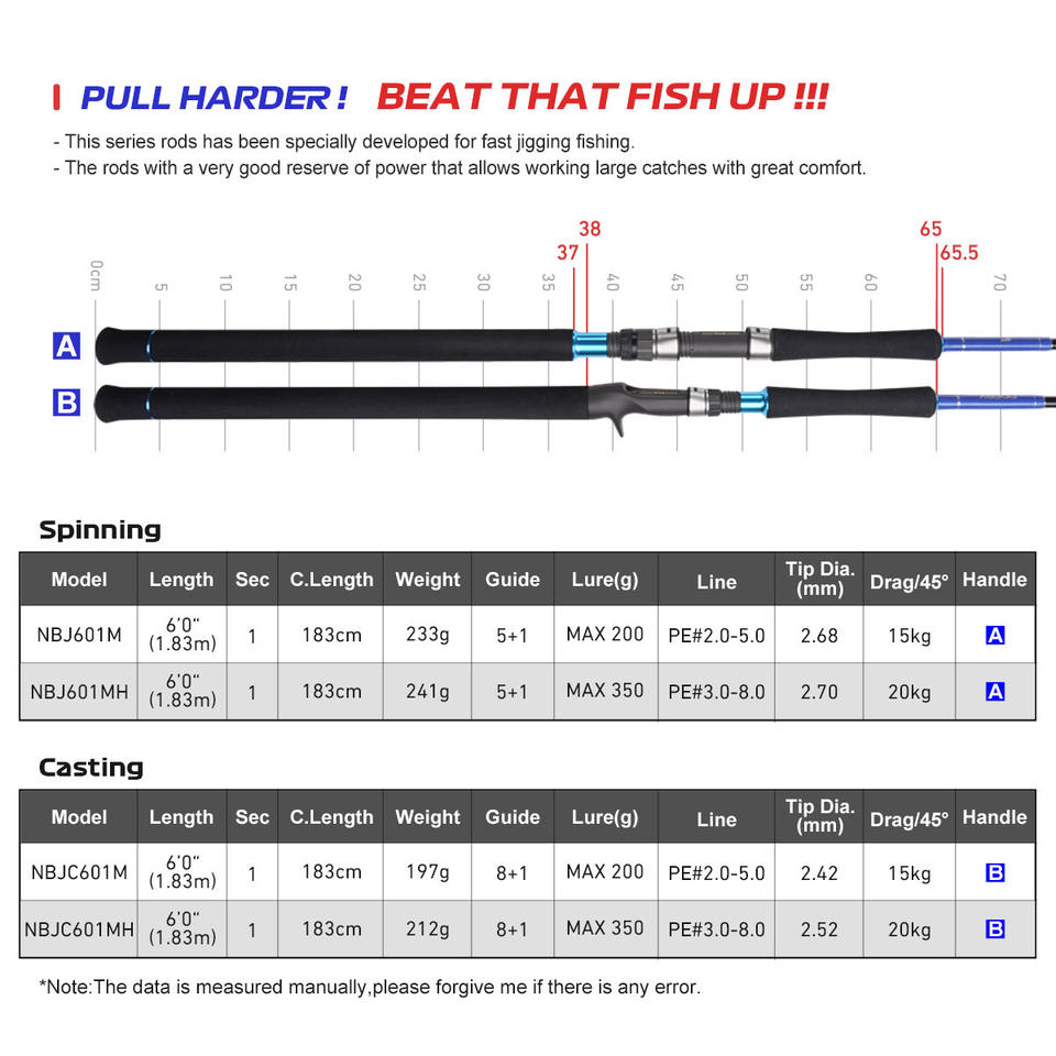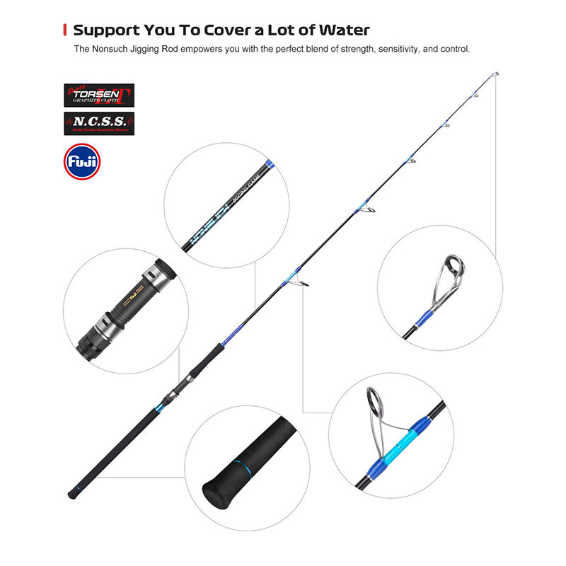 Canne à pêche spinning monobrin 1,83 m pour gros gibier, eau salée, mer, bateau, jigging