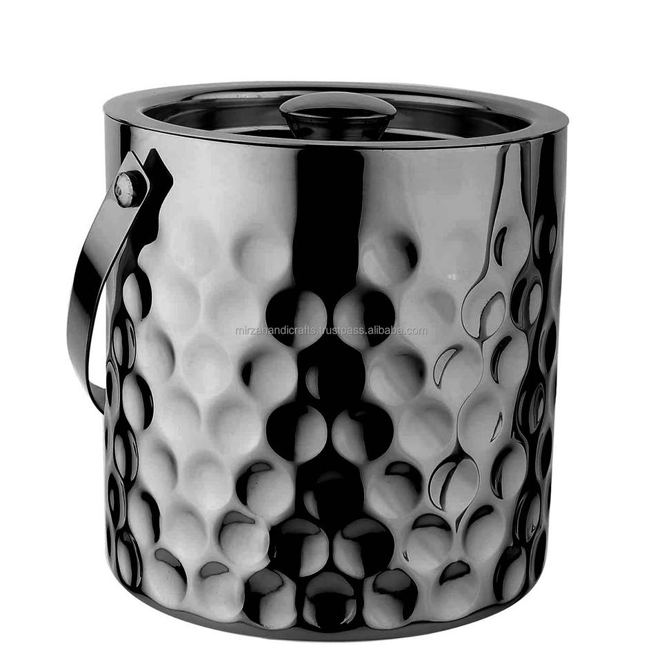 Grand seau à glace à double paroi au design martelé et fini noir pour bar à la maison, bière et vin frais avec couvercle et pince