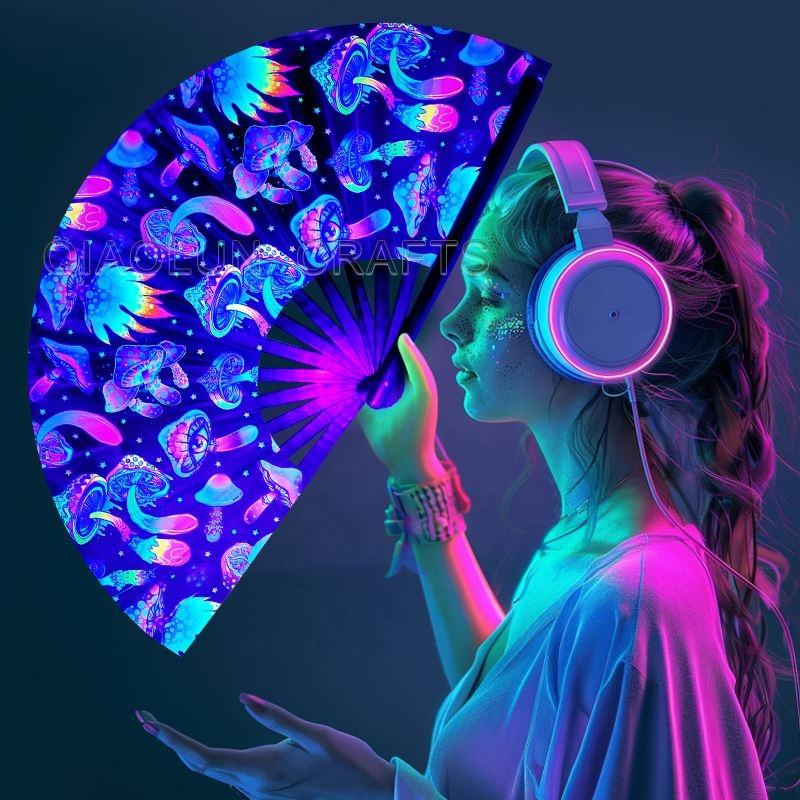 Grand ventilateur à main en bambou Kung Fu Techniques finement peintes avec brillant sous la lumière UV Produit artisanal en bambou unique
