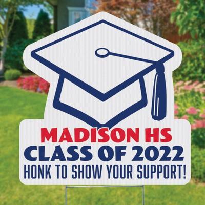Grande Décoration Extérieure Personnalisée avec Logo et Motif Casquette de Remise de Diplôme, Panneau de Jardin en Vinyle Ondulé Découpé (24"x24")