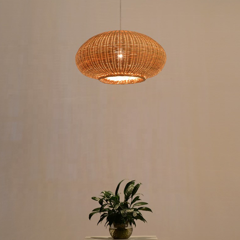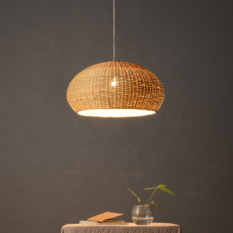 Grand lustre rond en rotin vietnamien, boule décorative, plafond bas, suspension contemporaine, lampe à suspension en bambou