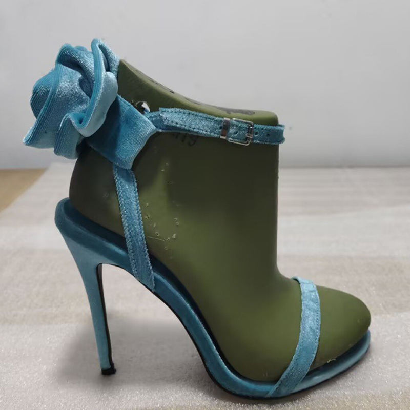 Sandales à talons hauts pour femme en daim, grande taille 45, avec fleur au dos, style stiletto, à brides cheville, à bride unique, pour l'été