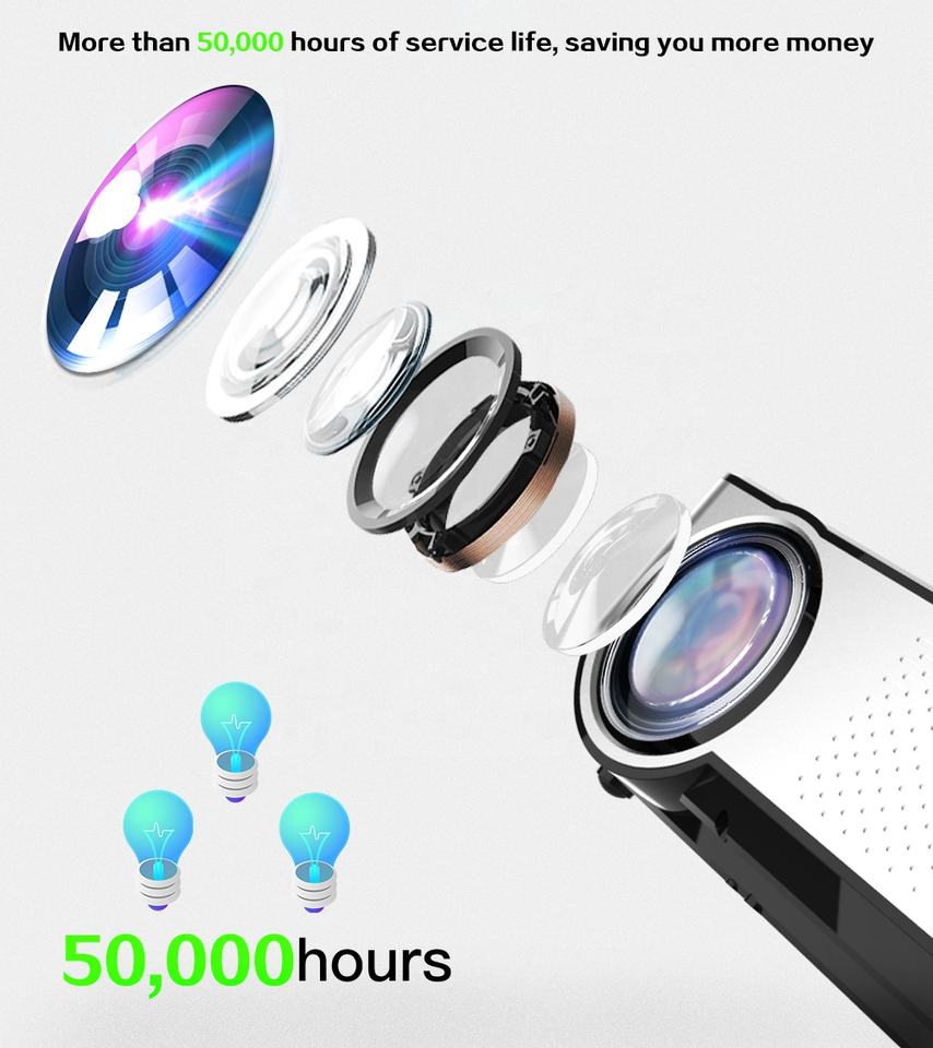 Projecteur LED portable grand format LCD C9 sans fil WiFi 6, compatible 1080P et 4K, pour home cinéma HD, avec entrées VGA et USB vidéo