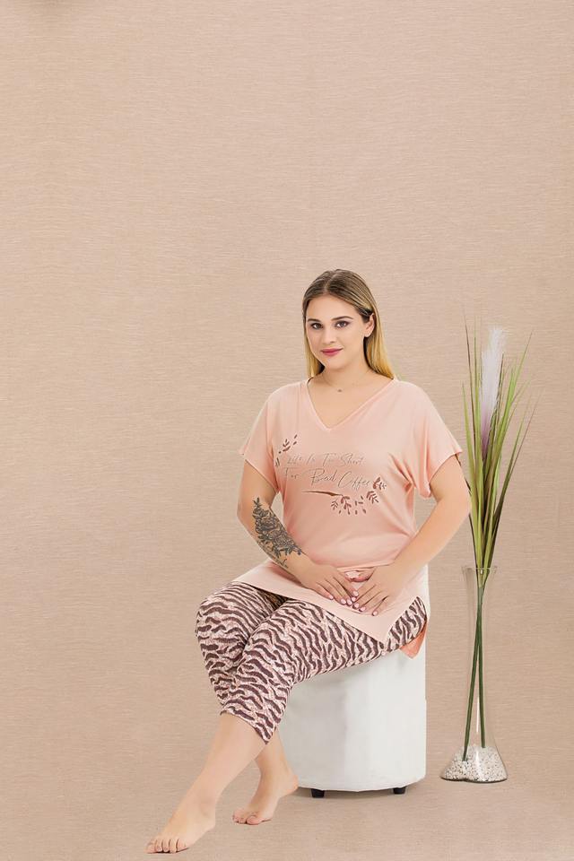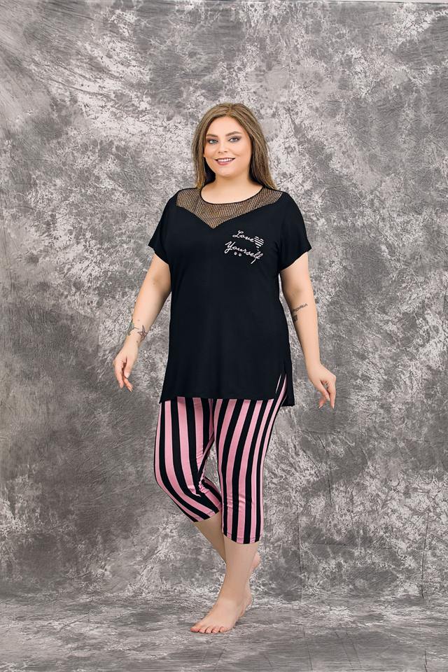 Ensemble Capri en viscose tricoté grande taille pour femme, manches courtes, imprimé, simple, doux, confortable, respirant, vêtements de nuit