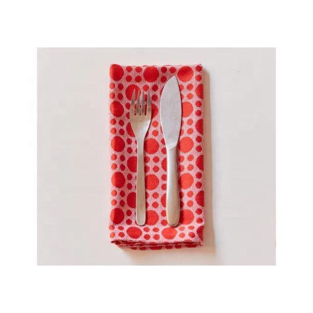 Big & Small Red Polka Dotted Embroidered Hotel 100% Cotton 48x48cm Table Cloth Napkin for Banquet & Wedding Party Event Decors