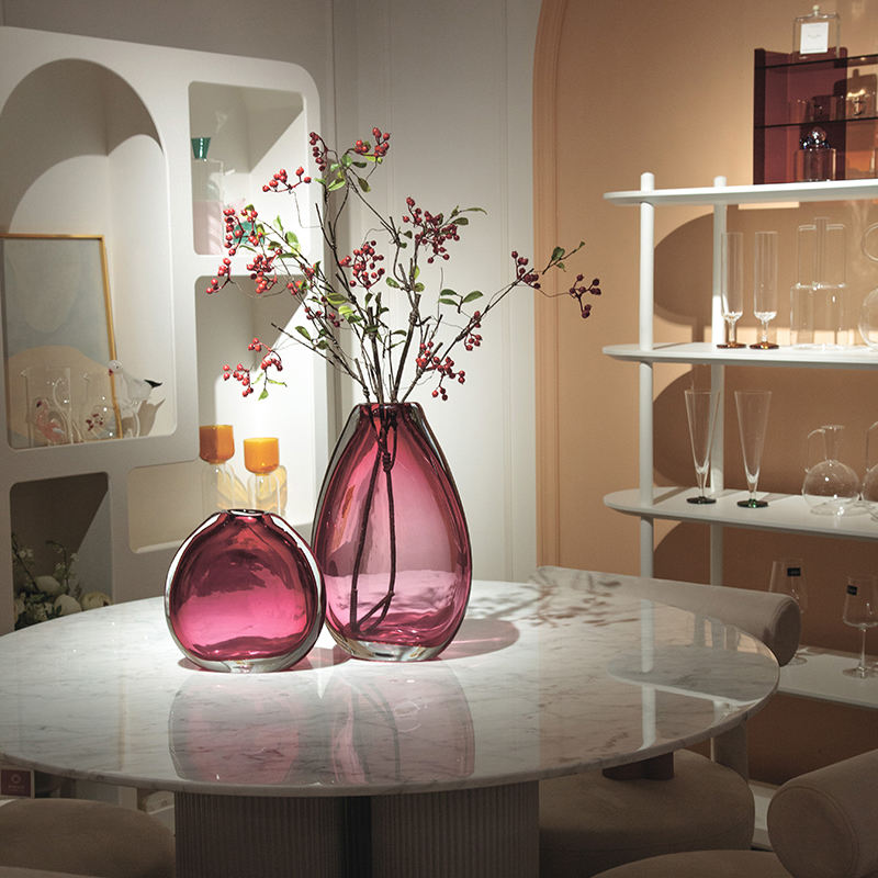 Big Small a Pair Wine Red Color Flower Craft Wedding Glass Cylinder Vases Small Bulk Wholesale