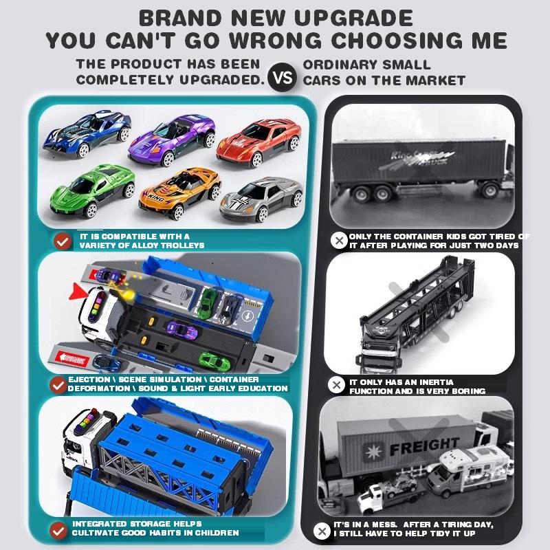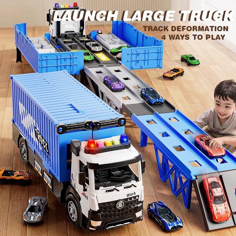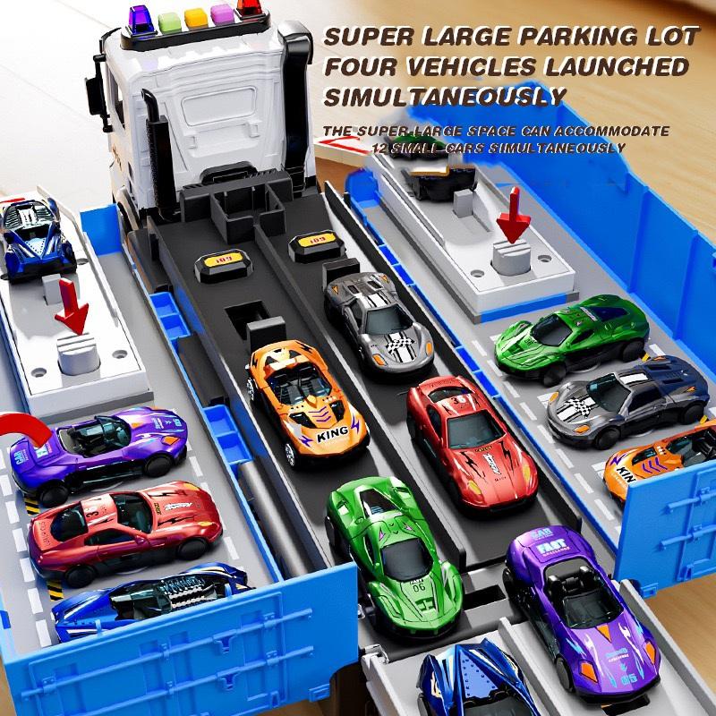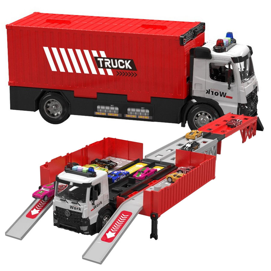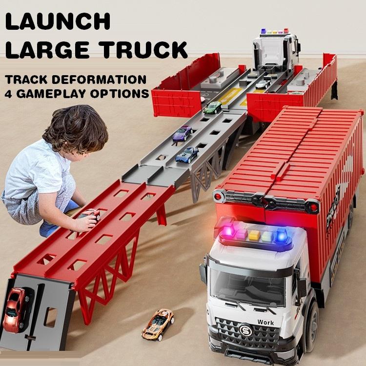 Ensemble de camions géants avec circuit de course, voitures interactives Orbit Car, autorama, circuit de stockage et de projection, camion conteneur, 4 voitures