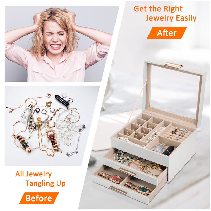 Grande boîte à bijoux organisateur en velours personnalisée portable unique jaune ensemble vert de boîte à bijoux miroir de taille de voyage emballage avec couches