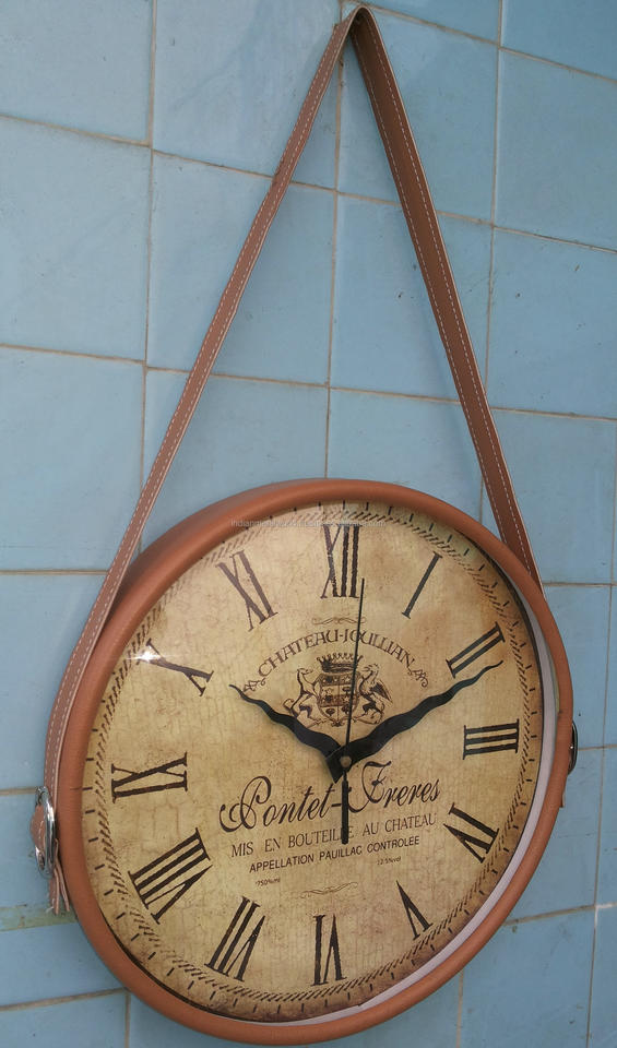 Grande horloge numérique suspendue avec poignée en cuir horloge murale décorative pour la maison au design merveilleux à prix compétitif