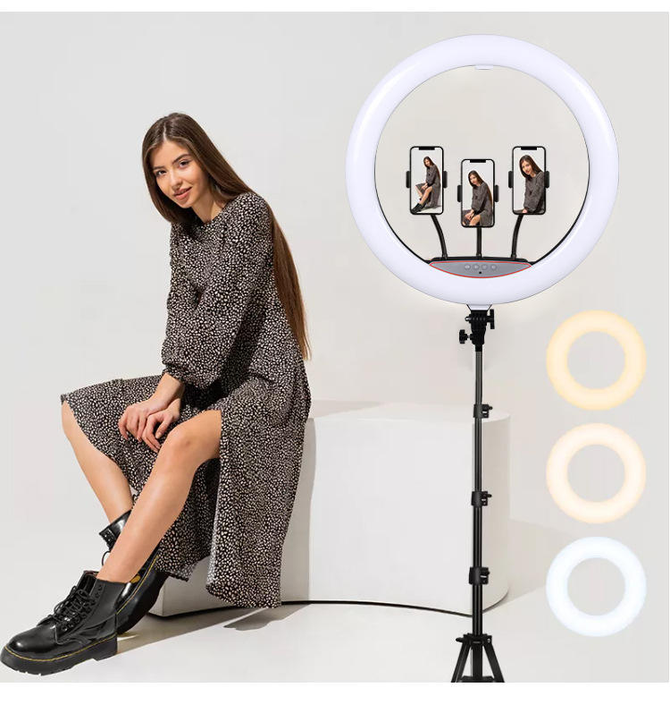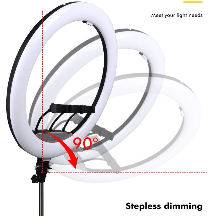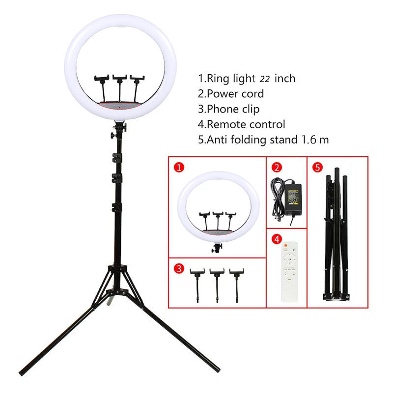 Grand anneau lumineux 56 cm anneau lumineux 1.6m support 3 support de téléphone télécommande 22 pouces anneau lumineux rotatif à 360 degrés avec support pour tiktok