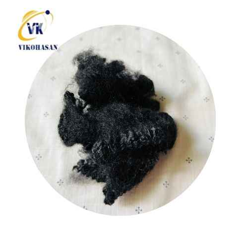 High Quality Vikohasan Brand Solid Dry Black Recycled Polyester Staple Fiber 6D*64mm 15D*64mm Flame Retardant Anti-Static