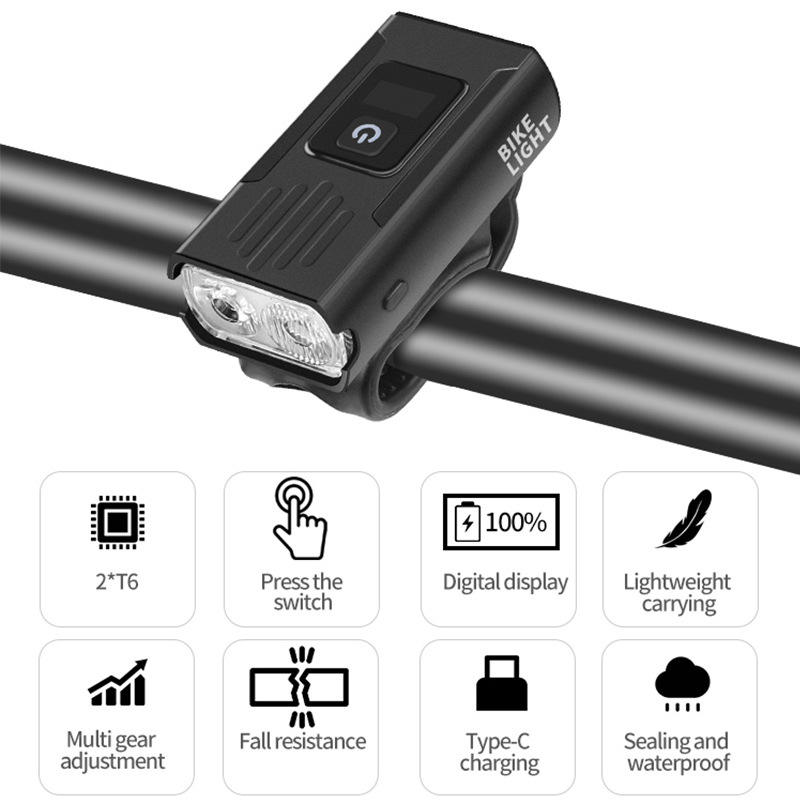 Lampe de vélo 1500mAh rechargeable, phare LED avant avec affichage numérique, étanche IPX4 pour vélo