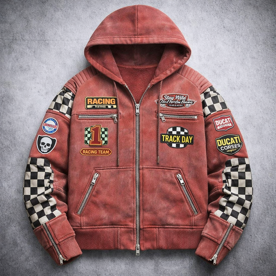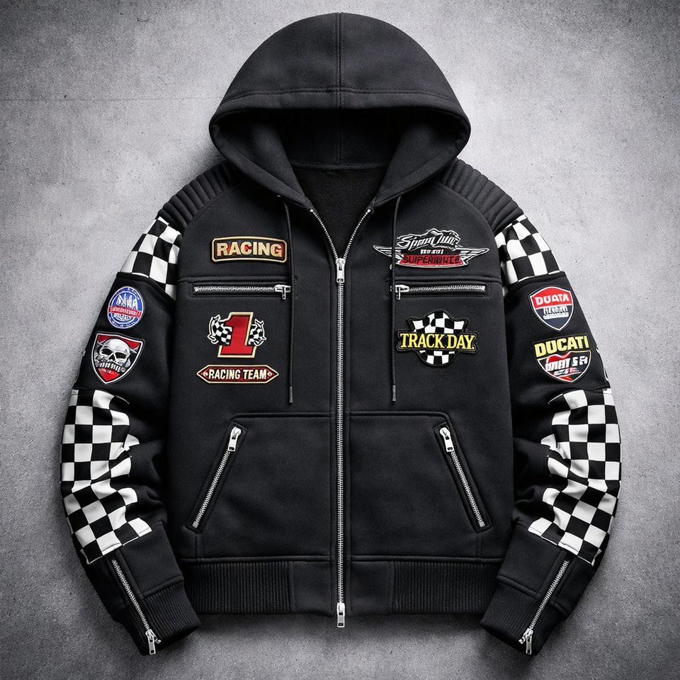 Sweat à capuche unisexe zippé en polaire pour motards, inspiré des sports, brodé, séchage rapide, écologique, mode printemps, logo 3D en relief