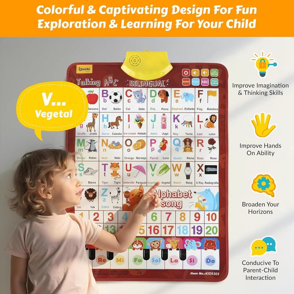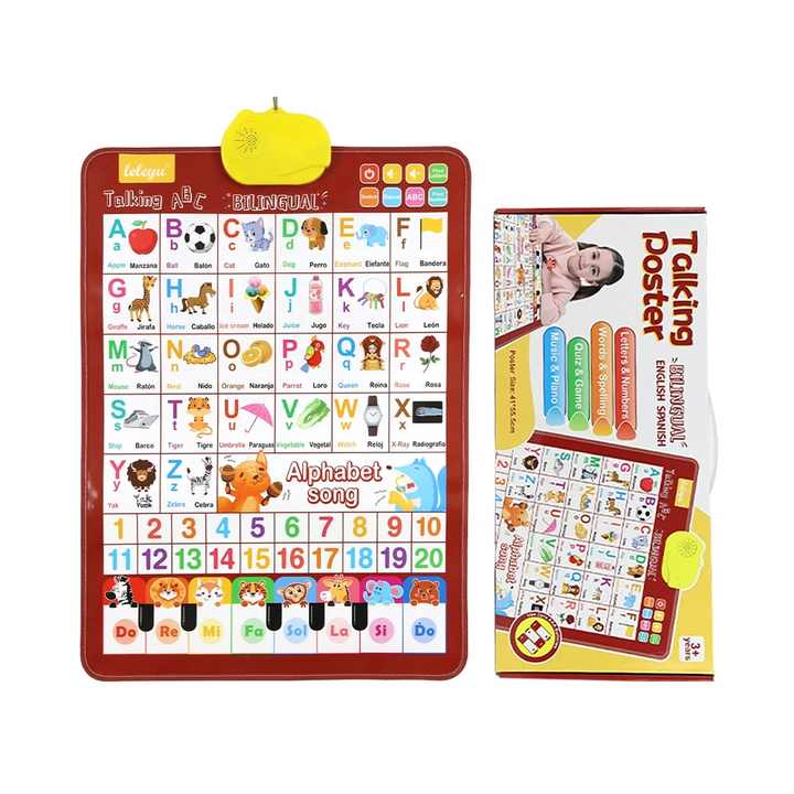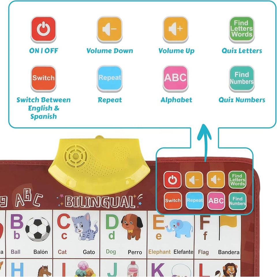 Alphabet bilingue anglais et espagnol ABC numéro mot musique affiche jouet d'apprentissage interactif parlant tableau mural jouet éducatif