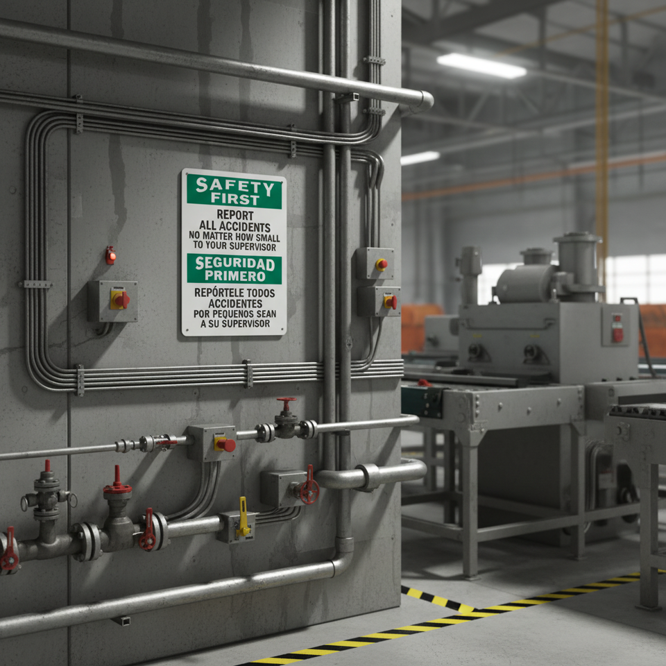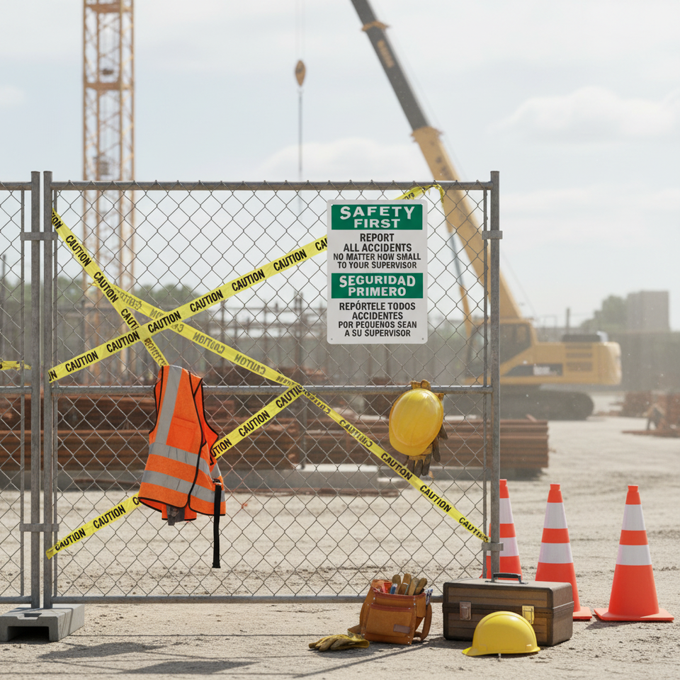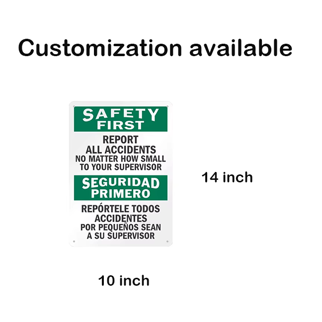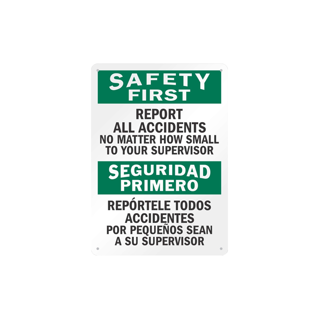Panneau de sécurité bilingue : signaliser tous les accidents au superviseur sur aluminium - Style OSHA/ANSI pour entrepôt, chantier de construction
