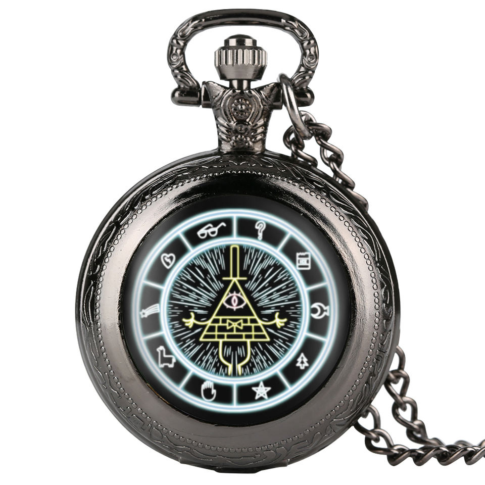 Bill Cipher Wheel Steampunk Jewelry Collier en bronze Montre de poche pour homme avec chaîne