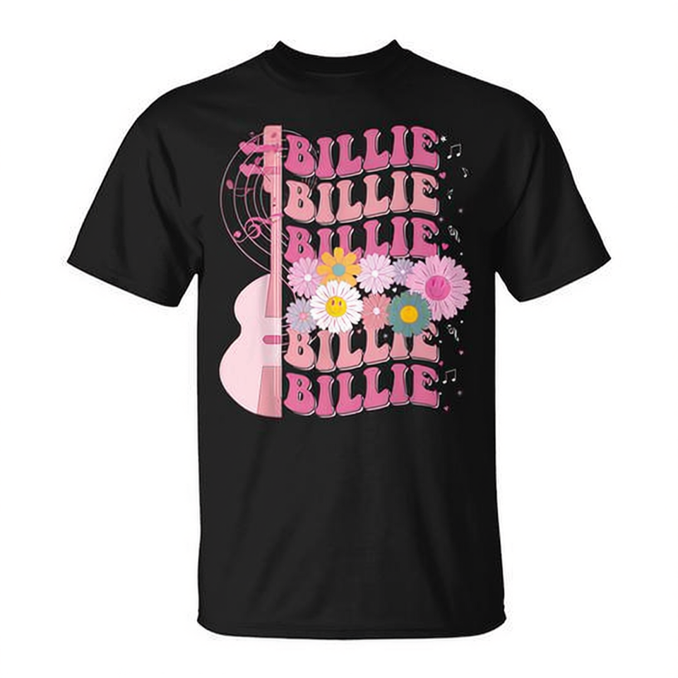T-shirt personnalisé avec prénom Billie, style années 80, motif floral rétro, taille adulte unisexe
