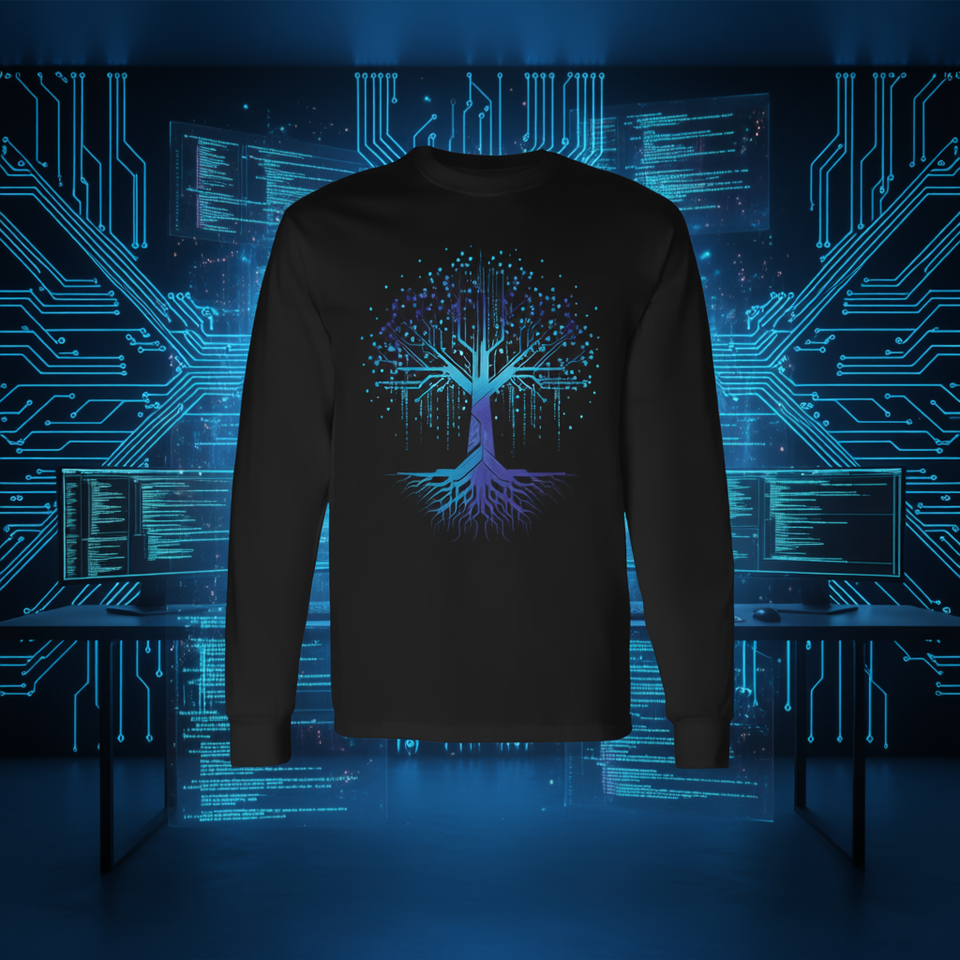 T-shirt à manches longues Binary Code Tree, design informatique, technologie, codage