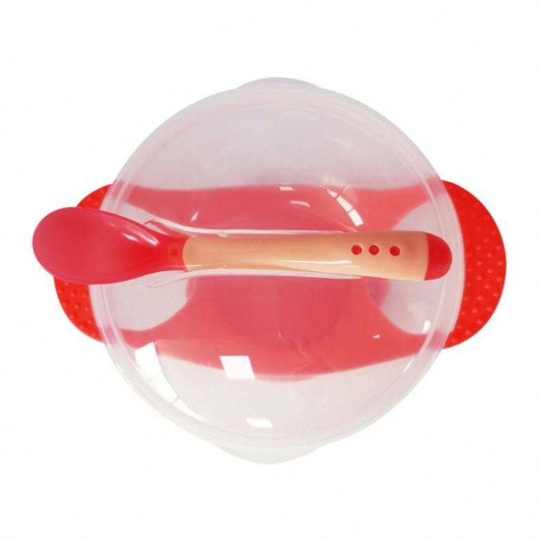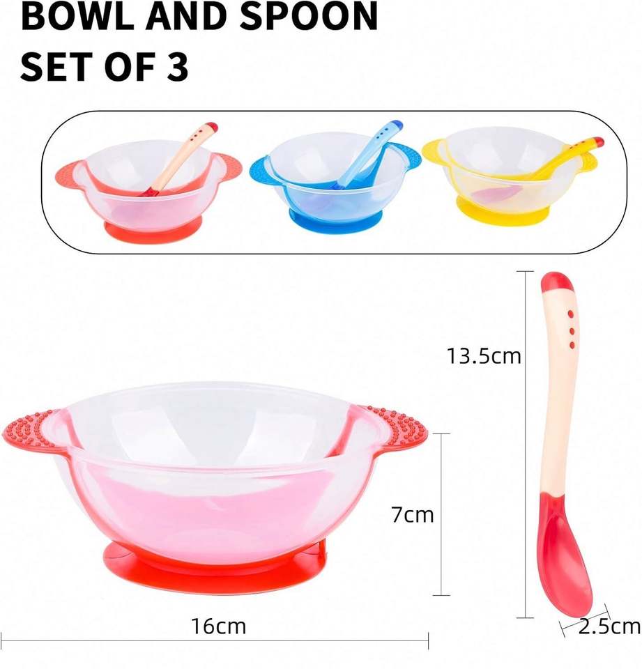 Bol pour bébé à design binaural, base à ventouse, couvercle anti-fuite, cuillère à détection de température pour bébés et tout-petits - Utilisation portable à la maison et en voyage