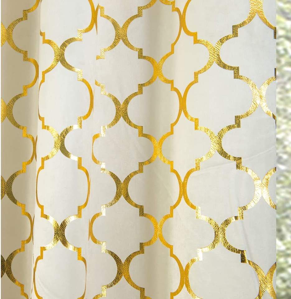 Rideaux occultants Bindi Window en velours à motif géométrique, avec œillets, dorés à effet feuille d'or, pour salon et maison