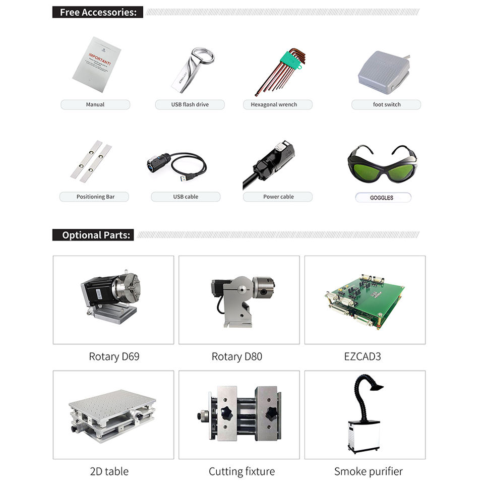 Machines de marquage laser à fibre Mopa BingYan 100W, graveur laser pour bijoux et métaux 20W 30W 50W 60W 200W, gravure laser 2.5D 3D à refroidissement par air