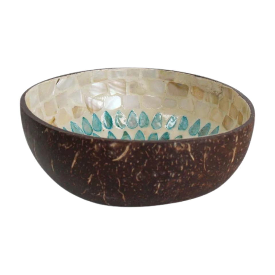 Bol en noix de coco fait main bio - Mosaïque de coquillages naturels - Accessoires éthiques pour la maison