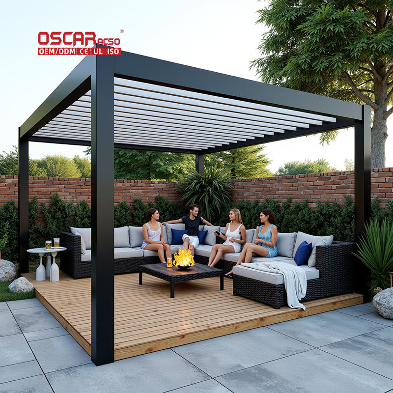 Pavillon Bioclimatic Kits motorisés auvent électrique Gazebo personnalisable Rv pare-soleil ensembles de jardin extérieur pergola en aluminium noir