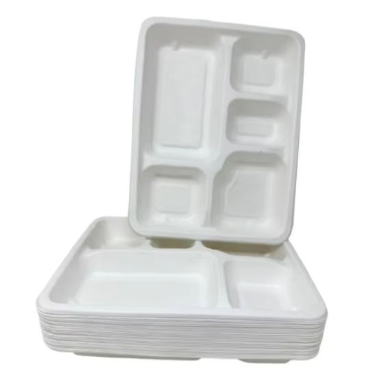 Vaisselle jetable biodégradable respectueuse de l'environnement 5 CP Plateau de repas Événements de restauration Assiette à déjeuner à emporter