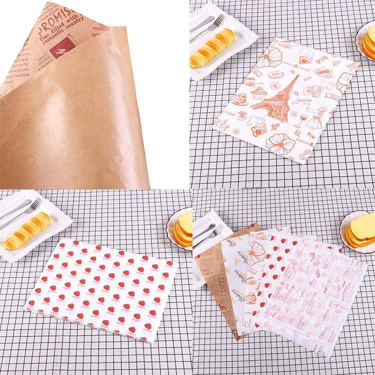Papier d'emballage pour hamburgers biodégradable, imprimé sur mesure, coloré, résistant à la graisse, papier d'emballage pour frites, résistant à la graisse